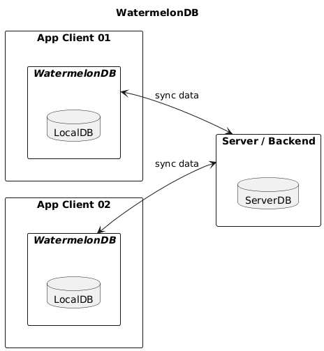 WatermelonDB is a reactive database for React frontend application that supports data synchronization.